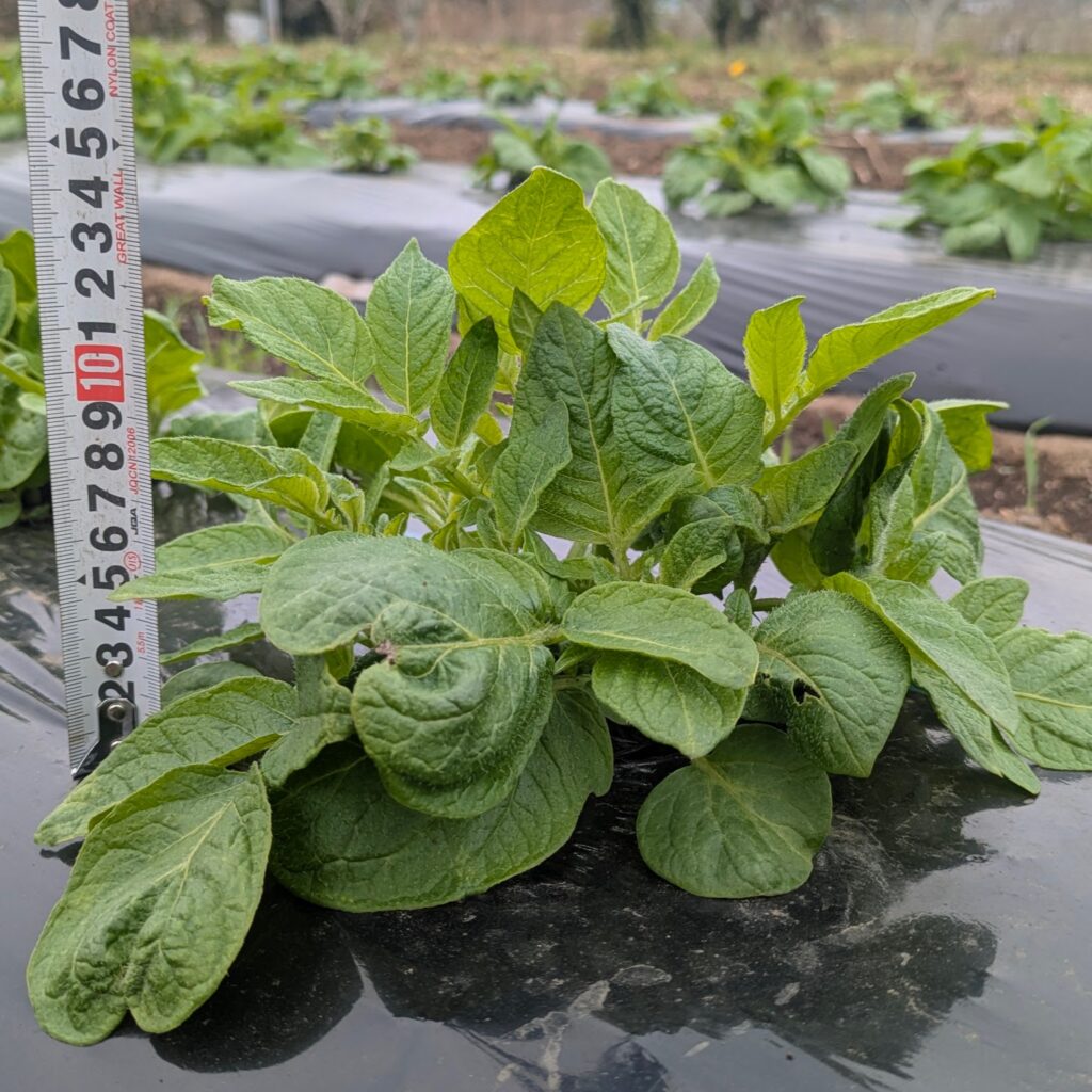 種芋を植え付けてから6週間で一番大きいのは15cmくらいまで成長しています。