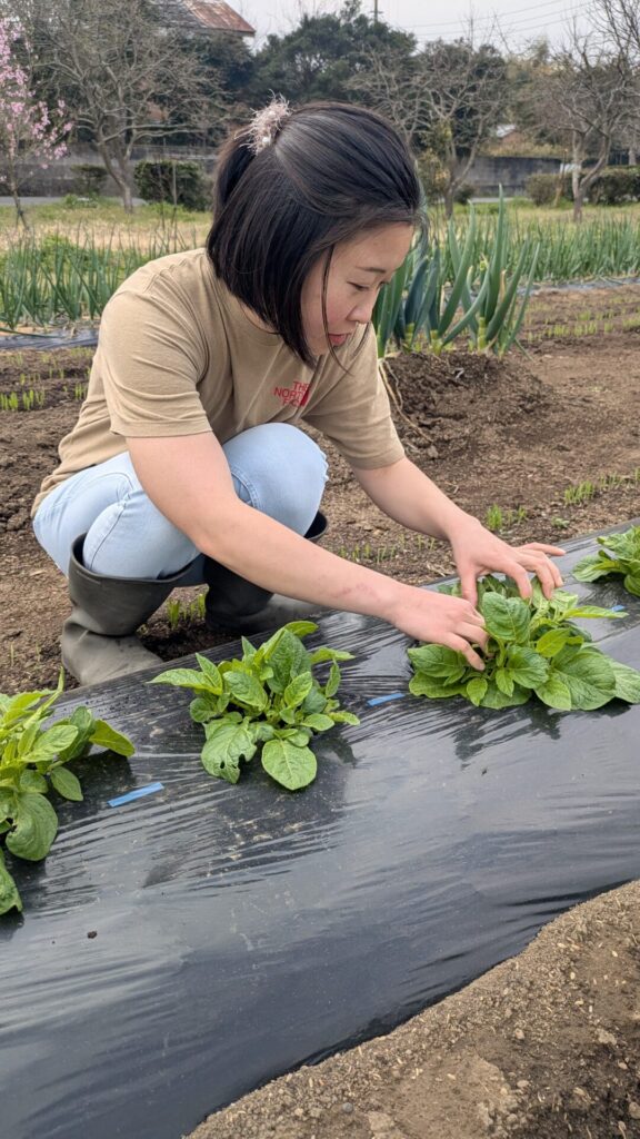 先日、畑にひとみさんが来てくれました。