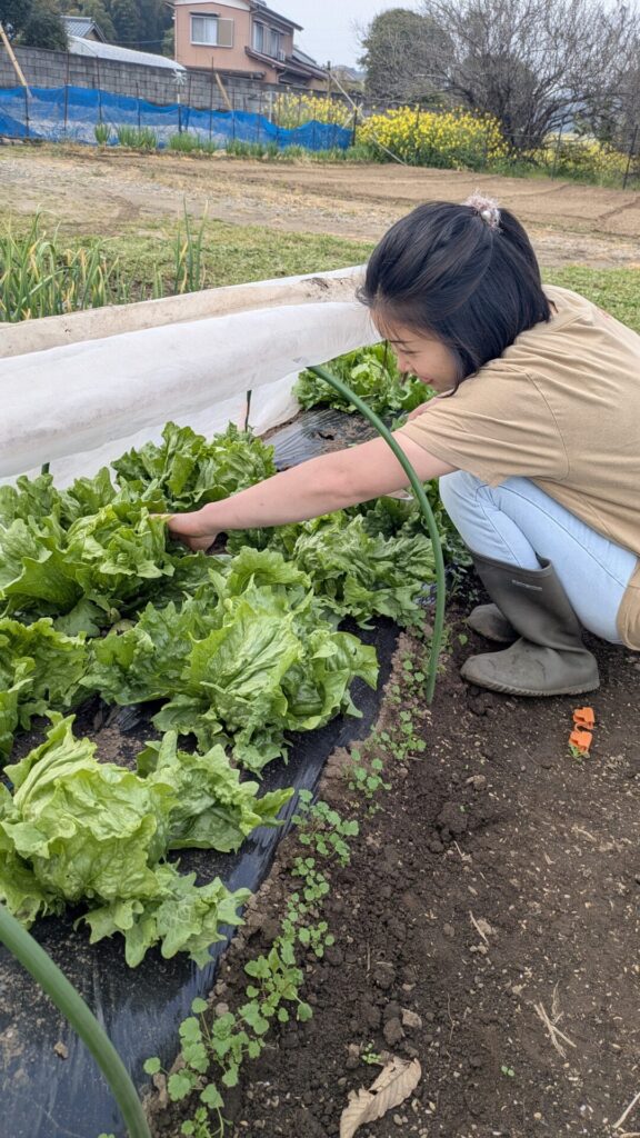 芽かきが終わってから、ちょうどレタスが収穫時期迎えているのでお土産に!